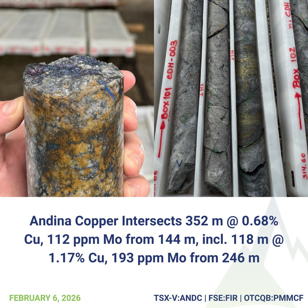 2026 promises to be an exciting time for Andina Copper shareholders, as we are now in a catalyst rich period with strong, exploration driven news flow being generated across all three of our projects. The 2025-26 field season is well underway at Piuquenes and exploration is continuing at pace at Cobrasco, with results from CDH004 expected shortly. Follow-up exploration will also shortly commence at Mantau.”