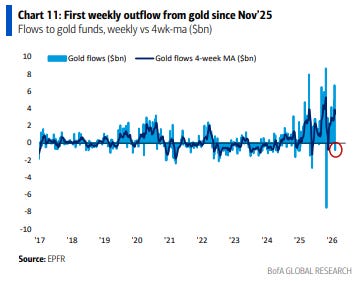 Last week, we saw the first weekly outflows from gold funds since last November: