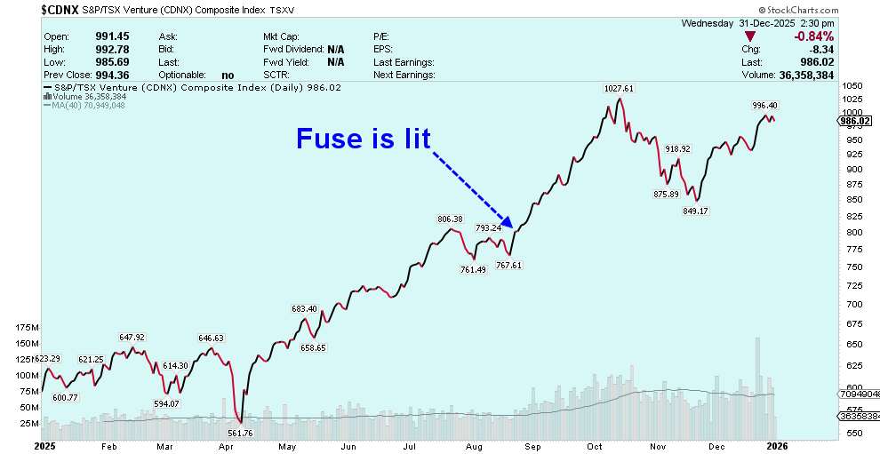 What I’m looking forward to in 2026 is continued strong performance in commodities – gold, silver, copper and other metals, and for the junior mining stocks to catch up and provide stronger gains than gold and the metals themselves. Although I’m an optimist by nature, my biggest worry going into 2026 is we get some unexpected ‘Black Swan’ event that derails this long awaited bull run in juniors that is just getting started and may be one of the biggest in our lifetime.