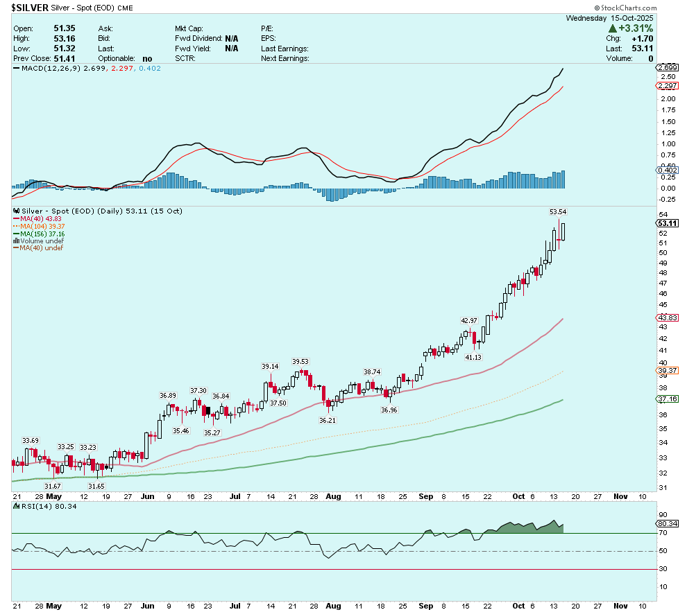 With October’s back and forth between China and the U.S. over tariffs and rare earths, it seems that China is losing patience. Its gold purchases may be accelerating, as evidenced by nightly gap higher opens when Asian markets begin to awaken.