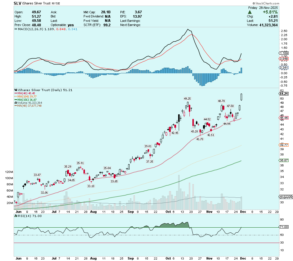 It’s also notable that the SLV exchange-traded fund traded up nearly 6% on more than 40,000,000 shares trading volume during a holiday-shortened trading session.