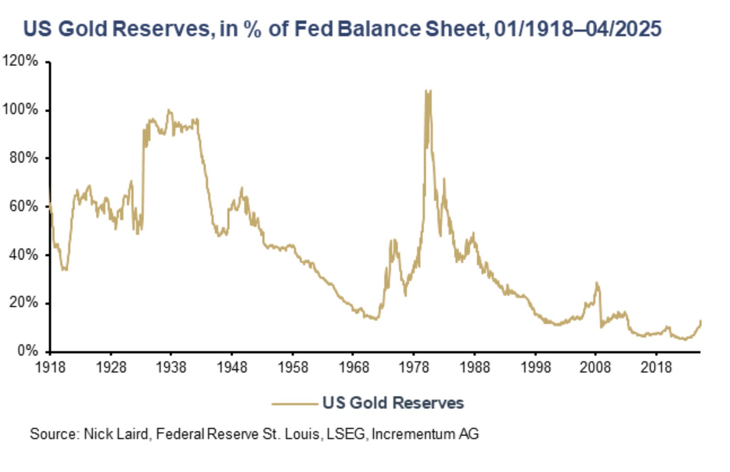 And gold reserves as a percentage of the Federal Reserve balance sheet has virtually never been lower: