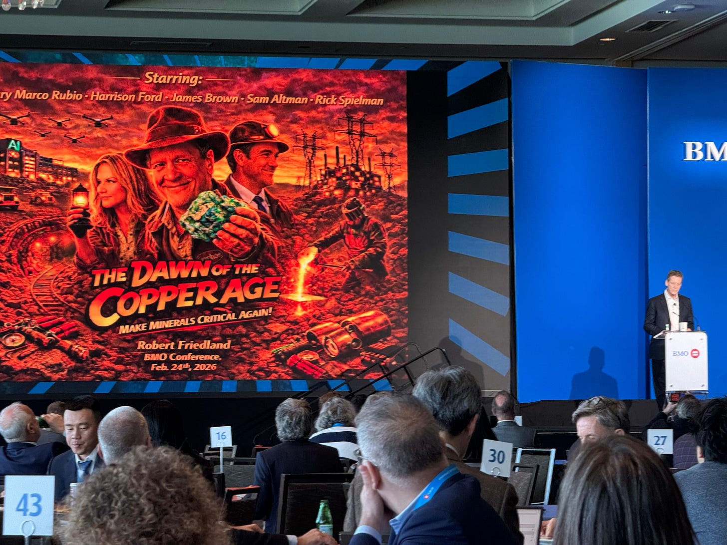 It’s fitting that billionaire mining entrepreneur Robert Friedland delivered a presentation today at the BMO Metals & Mining Conference in Florida titled “The Dawn of The Copper Age”, using an Indiana Jones themed title image:
