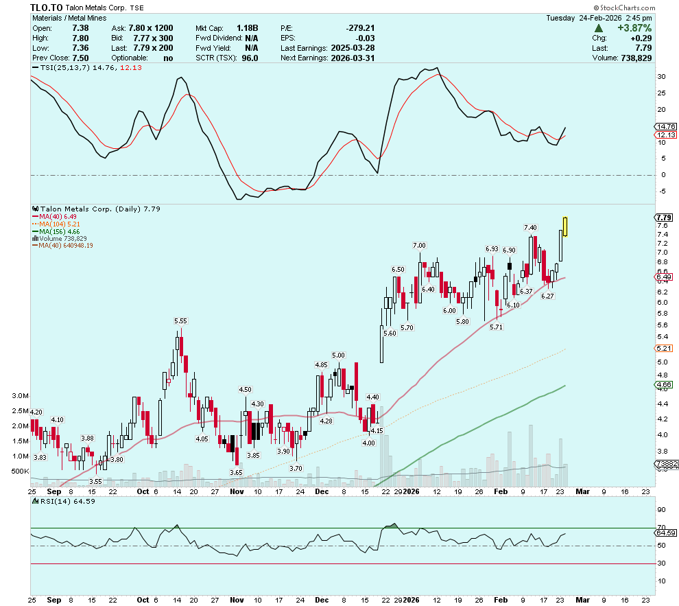 Minnesota/Michigan nickel-copper-cobalt-PGE explorer/developer/producer Talon Metals (TSX:TLO) continues to display notable relative strength, rising more than 15% so far this week.