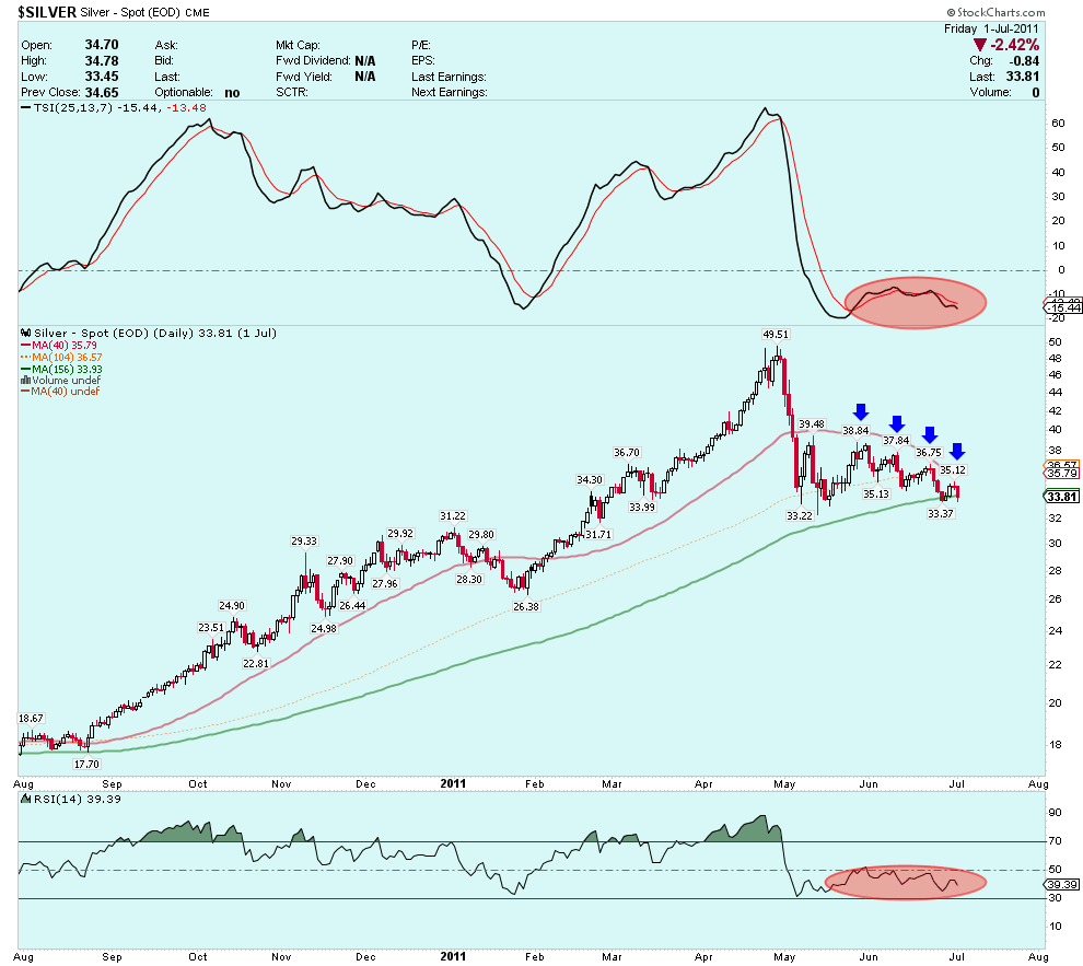 In other words, silver today is trading better than it did in the early stages of the 2011 decline.