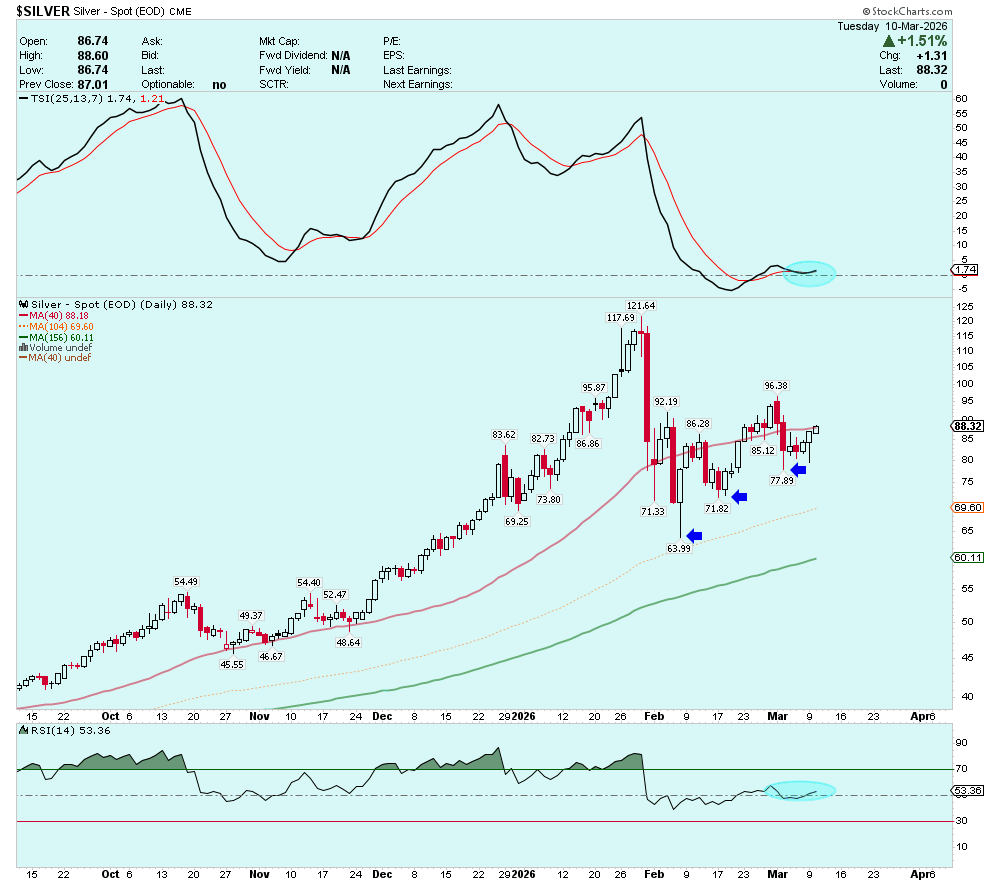 True Strength Index (TSI) has begun to turn higher