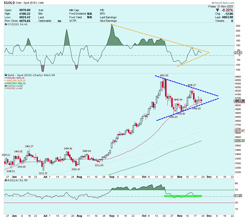 I expect another couple of weeks of oscillation and digestion for gold before a strong rally begins around mid-December. We could see new all-time highs in gold by the end of January.
