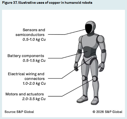 Humanoid robots each contain between 4 and 8 kilograms of copper—the numbers begin to get very large when one considers the possibility of hundreds of millions of humanoid robots produced annually beginning in ~2035