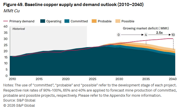 S&P Global recently published a brilliant report that studies the global outlook for copper supply and demand through 2040