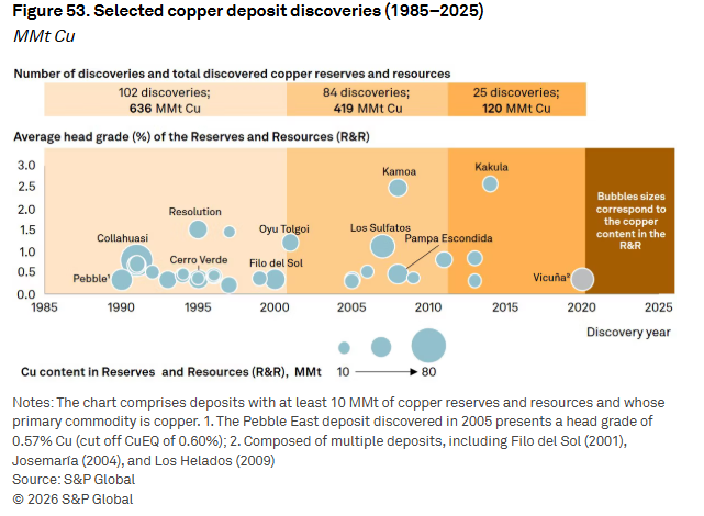 Meaningful new discoveries are increasingly scarce, and some discoveries that were made in the 1990s still aren’t in production today (Pebble, Resolution, etc.)