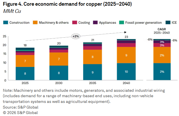 Copper also underpins traditional growth sectors (construction, consumer electronics) alongside emerging ones (AI, robotics, defense).