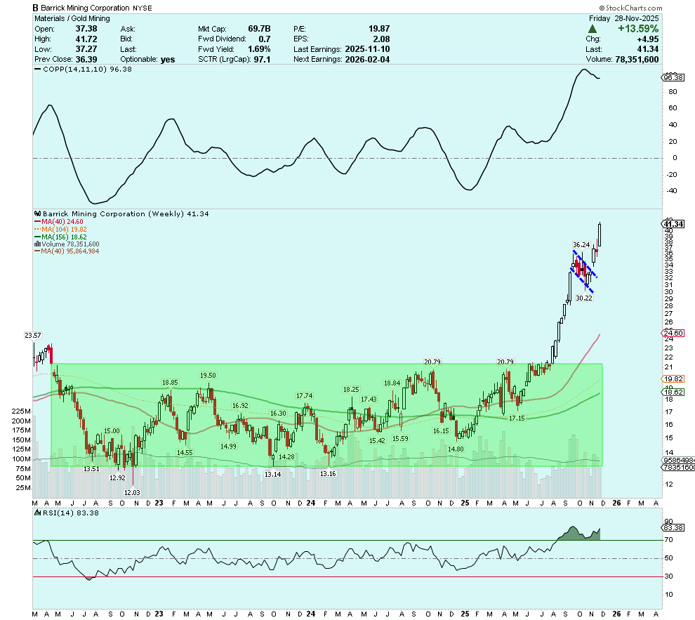 In 2025, we have witnessed a multitude of powerfully trending breakout moves across the gold mining sector. Perhaps the most surprising of all of them has been the ~167% year-to-date gain in Barrick Mining (NYSE:B, TSX:ABX):