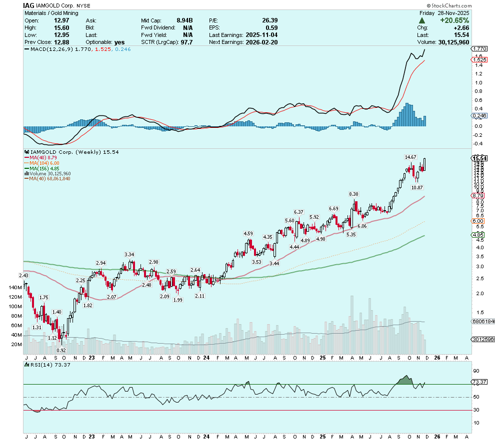 Barrick is a stock that I have highlighted many times throughout the year (here, here, and here). In fact, back in October I built up a significant long position in Barrick (both through common shares and call options) with the thesis that it was only a matter of time before Newmont made a move for Barrick’s U.S. assets. Meanwhile, the Barrick chart underwent a reset in October/November, while remaining in a very bullish overall trend.