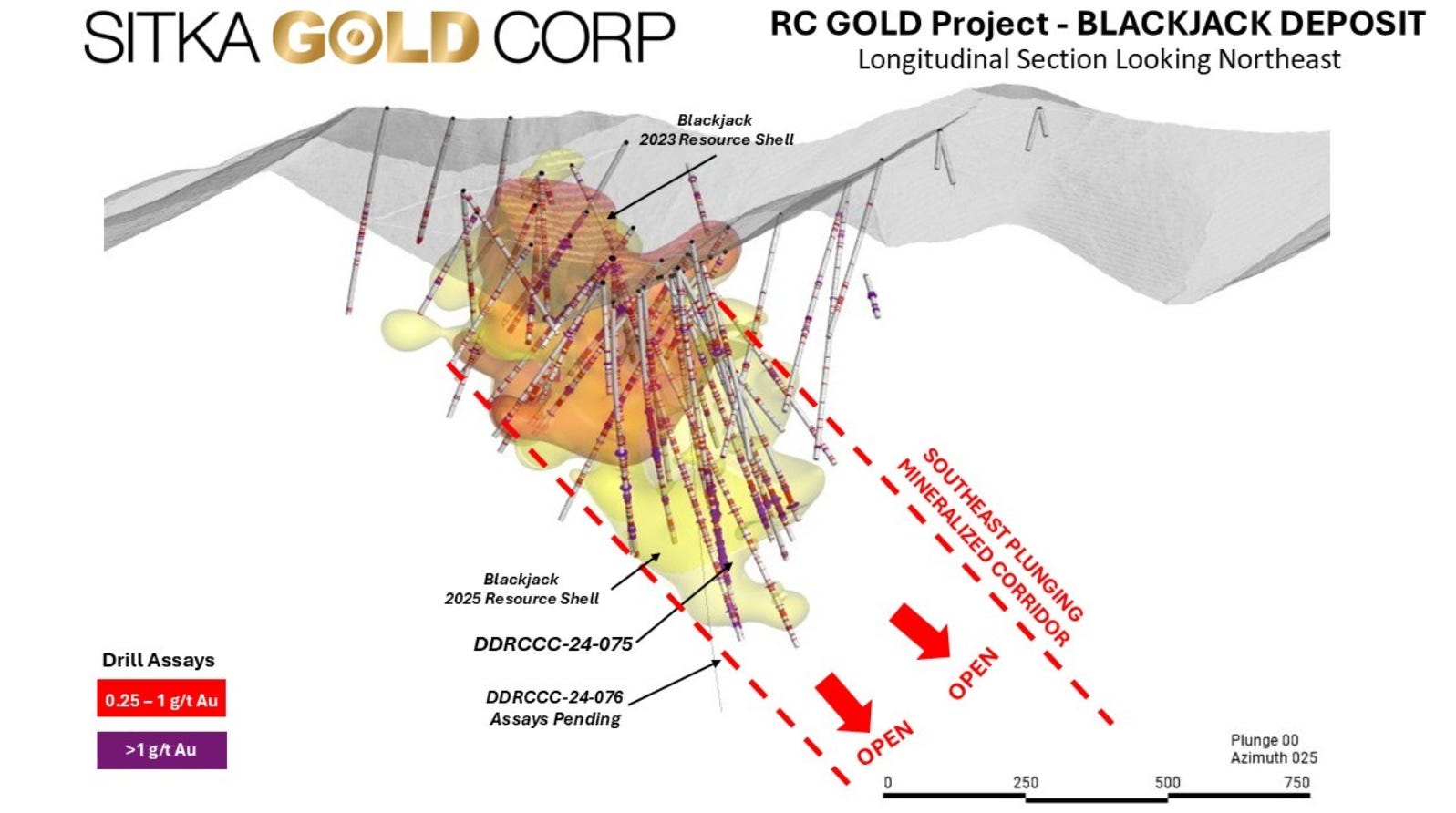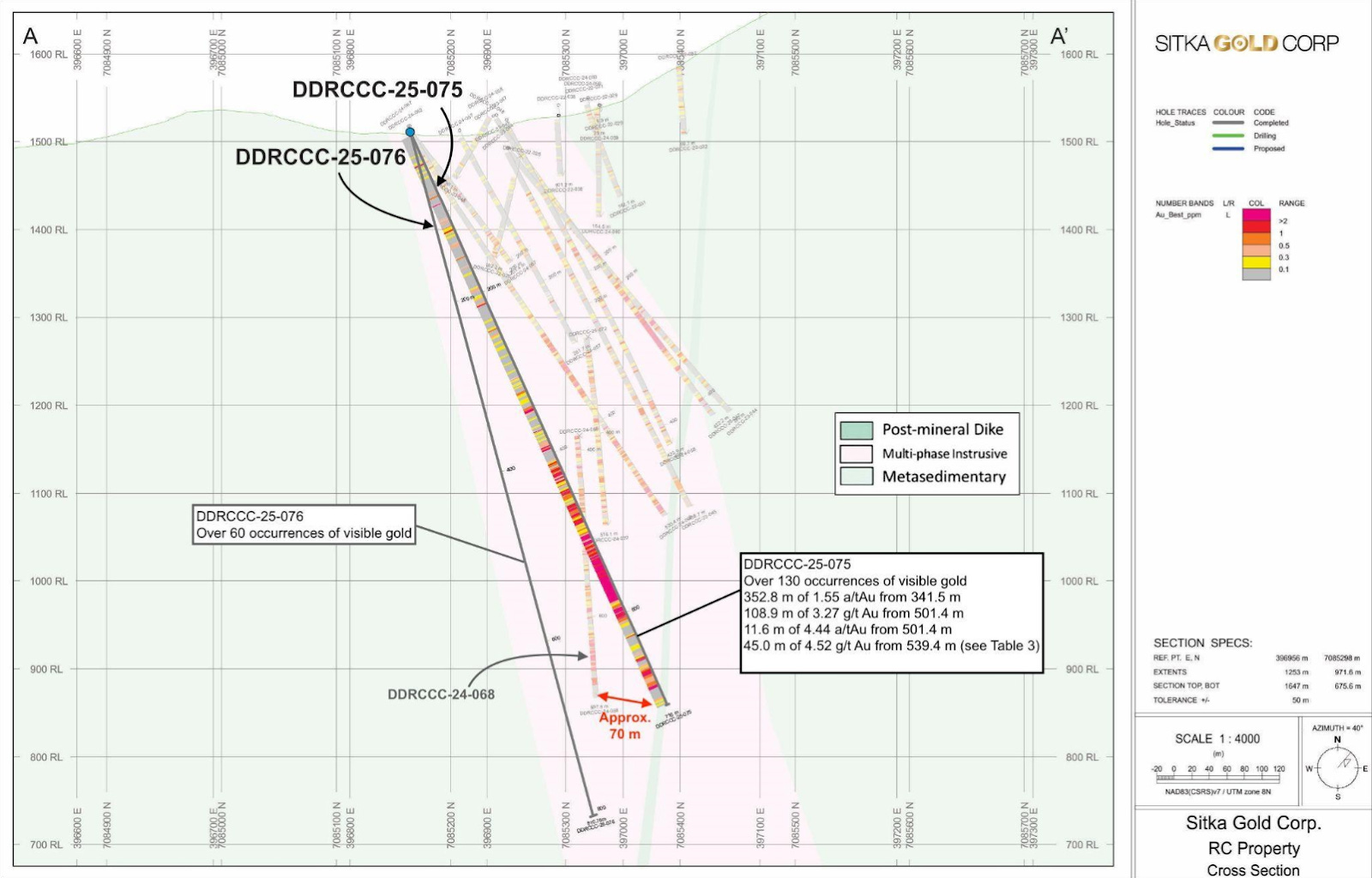 Hole 75 is the first diamond drill hole to be completed in 2025 drilling at the RC Gold Project. Sitka is planning 30,000 meters of diamond drilling at RC Gold in 2025.