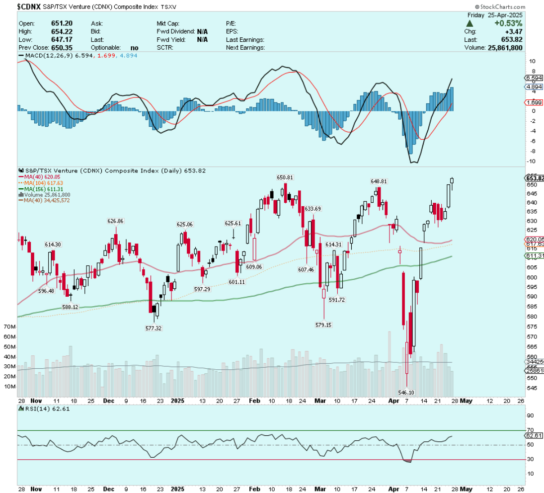 Oddly enough, I didn’t see a single mention of the TSX-Venture Composite’s close above 650 on Friday afternoon. Admittedly, I was preoccupied with other things on Friday but normally at least one mention of such a momentous occasion would cross my assorted timelines.