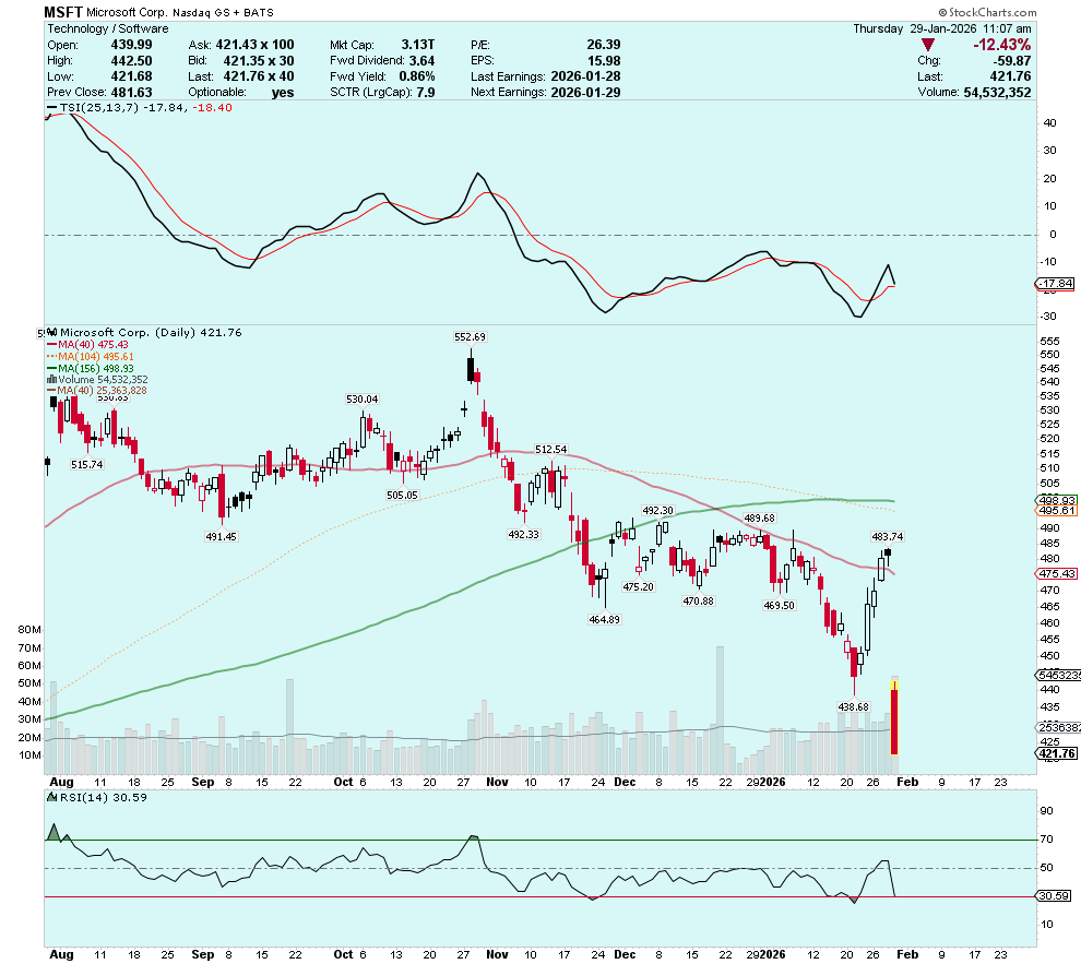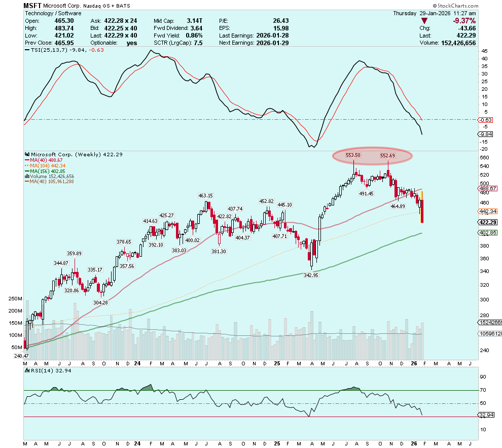 Did anyone notice that mega-cap tech giant Microsoft (Nasdaq:MSFT) is in a confirmed downtrend, gapping lower to its lowest levels since May 2025?