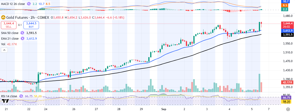Meanwhile, gold has had an historically awesome run over the last couple weeks. In fact, it wasn’t long ago that we were trading in the $3300s. Today, the December gold futures contract reached $3,654/oz: