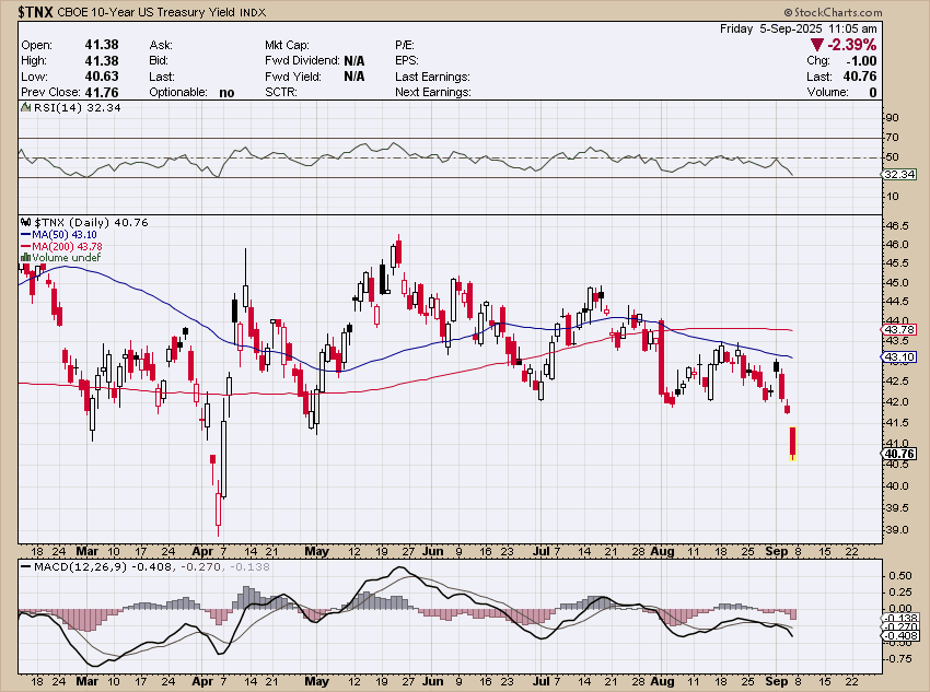 One of the incoming administration’s stated objectives all the way back in January was to lower the cost of U.S. Treasury borrowing. In fact, Bessent asked to be judged by the yield on the U.S. 10-year Note. After many fits and starts, including a post-Liberation Day spike higher, Bessent appears to be getting the breakdown in long-end yields that he was hoping for…